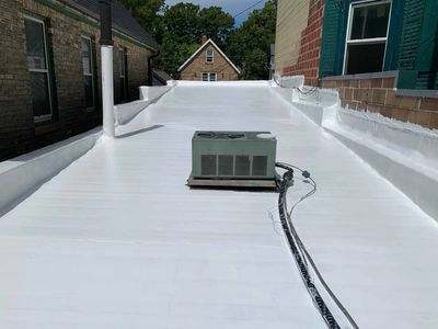 Roof coatings are liquid applied protective layers designed to seal protect and extend the life of your roof the right coating depends on your roof type condition and long term goals clear roof coating is best for asphalt shingle roofs benefits help lock existing granules in place slowing degranulation protect shingles from UV damage and oxidation Preserve the roof's natural color and appearance extend roof life without changing how it looks clear coatings are ideal if you want protection without altering the appearance of your roof colored roof coating is best for aging roofs needing both protection and a refreshed look benefits all the protection of clear coatings improve curb appeal by restoring uniform color Add an extra layer of UV and weather resistance help roofs look newer while performing better colored coatings are a great option when appearance matters as much as protection acrylic roof coatings best for flag or low slope roofs metal modified bitumen some membranes benefits highly UV reflective helping reduce heat buildup water based and environmentally friendly extend roof life and improve energy efficiency